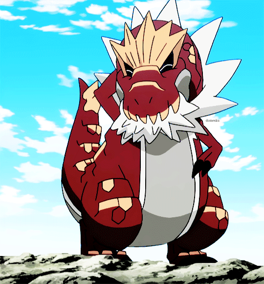 Tyrantrum was digging in the hills, when Lysandre shared berries with him. After that, he stayed with the fiery man.Tyrantrum's preferred moves are Head Smash, Iron Head, Dragon Claw, and Earthquake. He has a Bashful Nature, and the ability Rock Head.